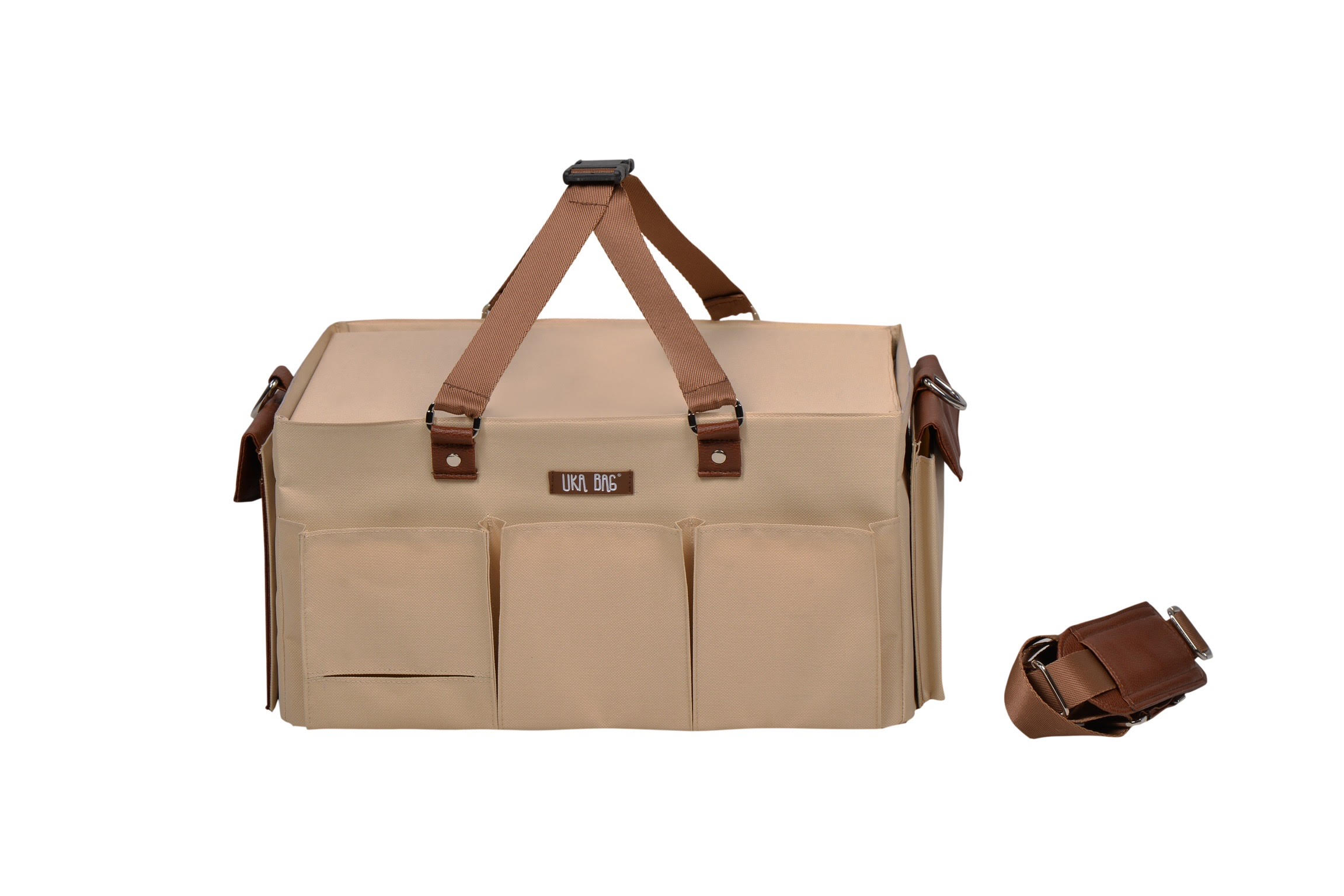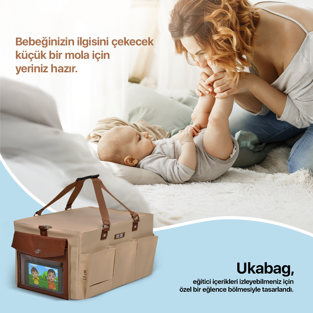 Ukabag, annelerin günlük ihtiyaçlarını kolaylaştırmak ve bebeğinizle geçirdiğiniz her anı daha konforlu hale getirmek için tasarlandı. İç ve dış tasarımında kullanılan sert ve dayanıklı malzeme, çantanın formunu koruyarak eşyalarınızı güvenle saklamanızı sağlar. İster evde ister dışarıda olun, taşınabilir yapısıyla hem indoor hem de outdoor kullanıma uygundur.